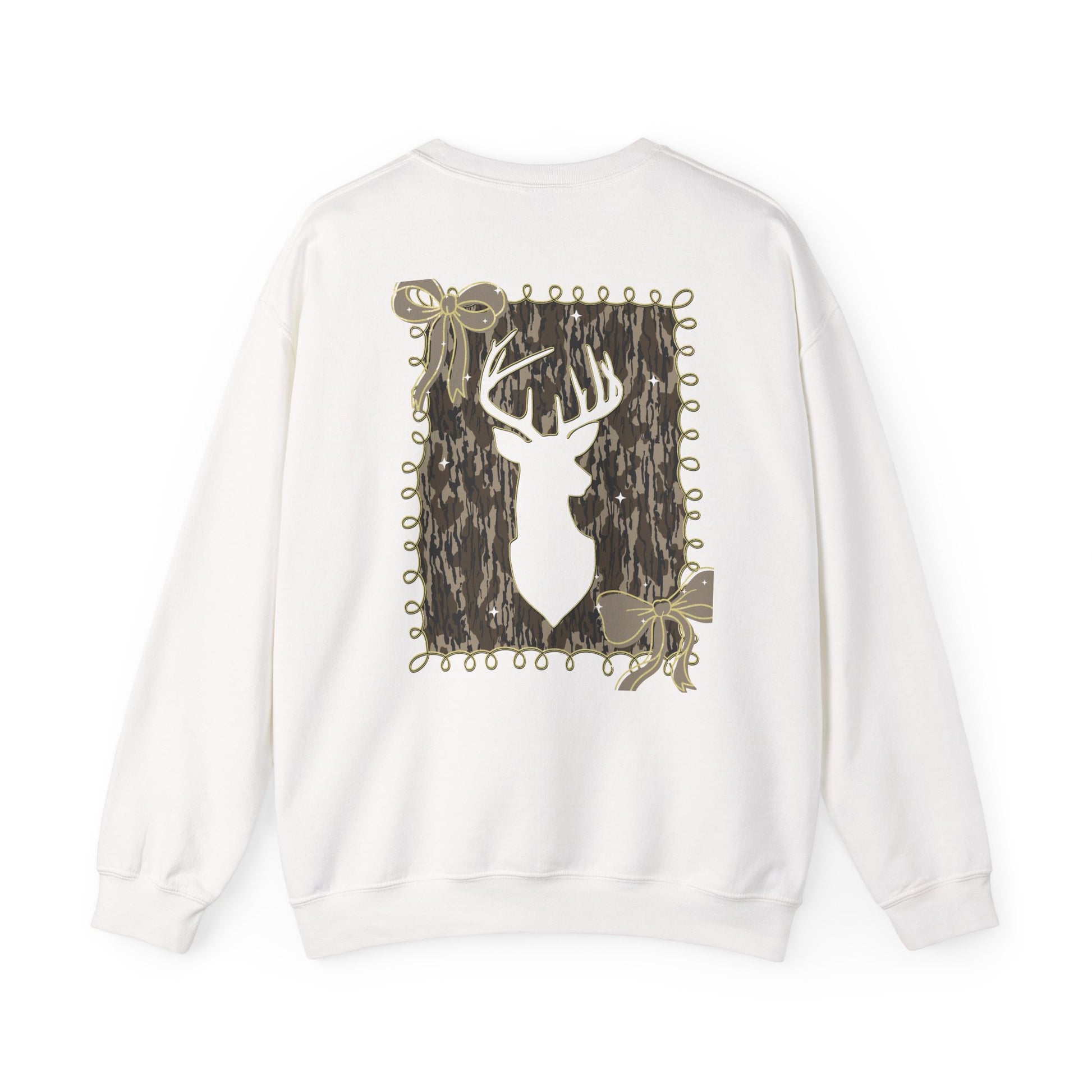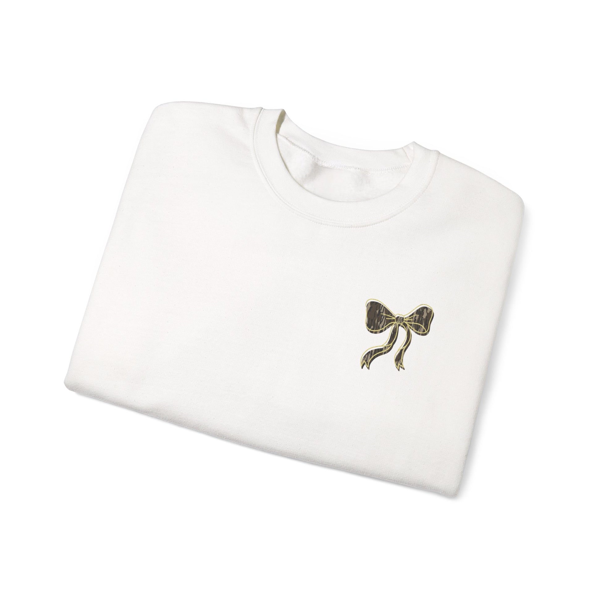 Where country charm meets timeless elegance. This beautifully crafted crewneck features a refined camo deer design adorned with delicate golden bows. Soft, cozy, and effortlessly stylish — a statement piece for every season.